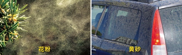 「ルックス レインコート」に含まれる「マイクロフッ素樹脂」が花粉や黄砂の固着を防ぐので、ボディに積もった花粉や黄砂を簡単に水で洗い流すことができます!