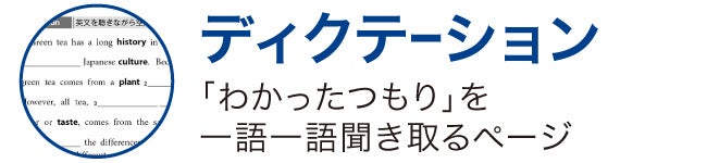 単語定着とリスニング力アップを目的として、英文中の見出し語を中心としたディクテーションページを掲載。聞き取れない部分や記憶が不確かな単語のスペルを洗い出すことができ、英語力を総合的に鍛えられます。