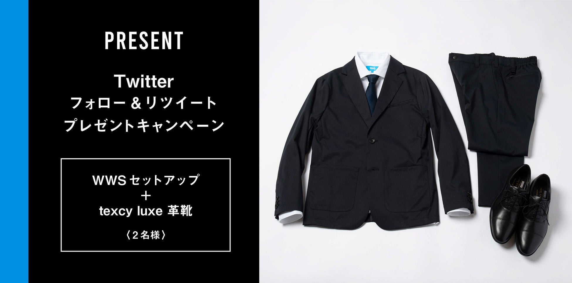 〇応募方法:WWS公式Twitterアカウント「@workwearsuit」とtexcy luxe公式Twitterアカウント「@texcyluxe」を双方フォローし、双方のキャンペーン対象ツイートをリツイート、または引用リツイート