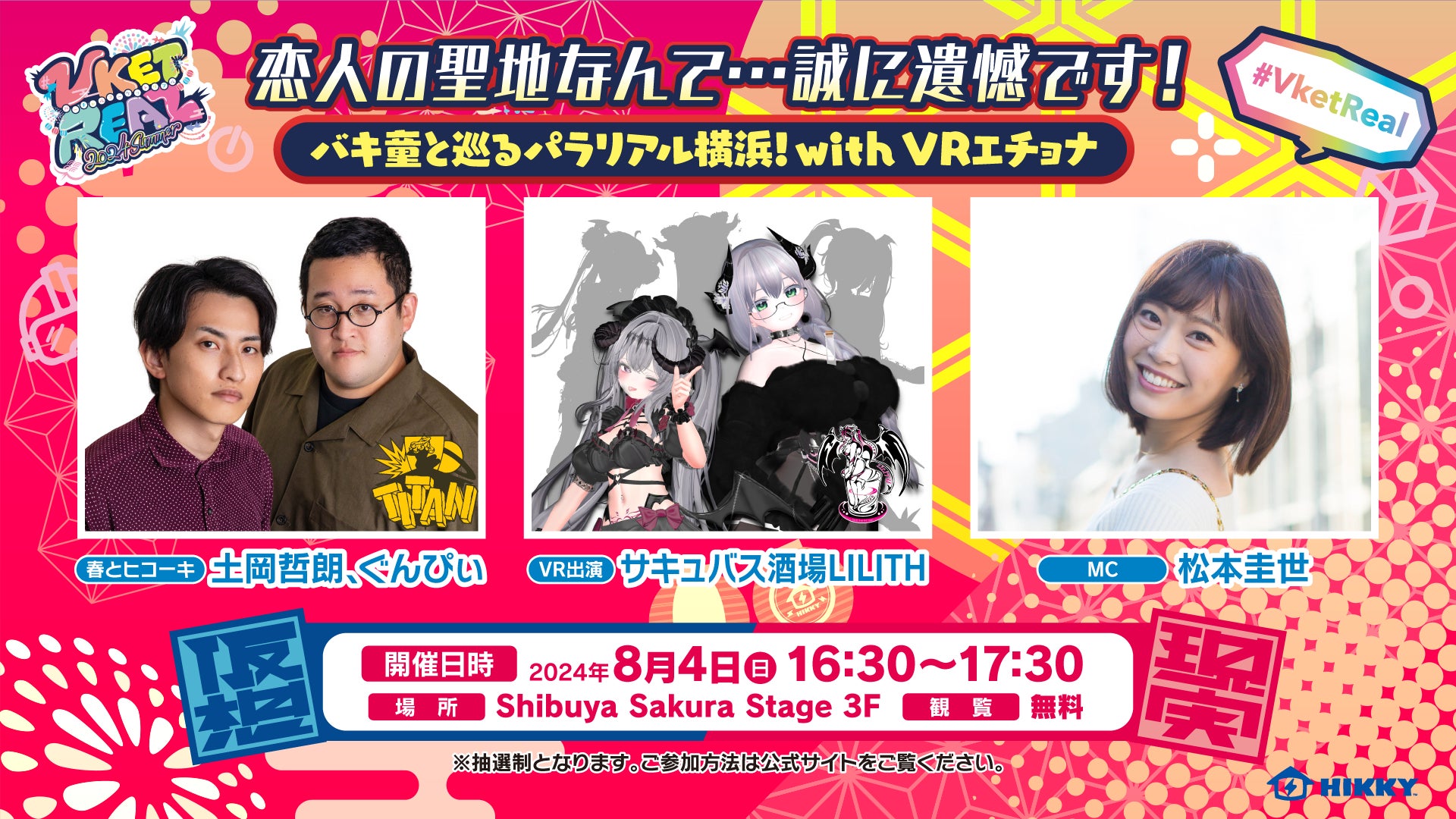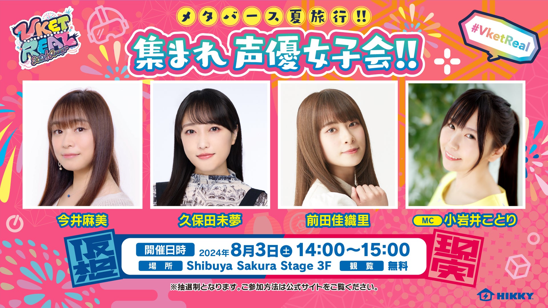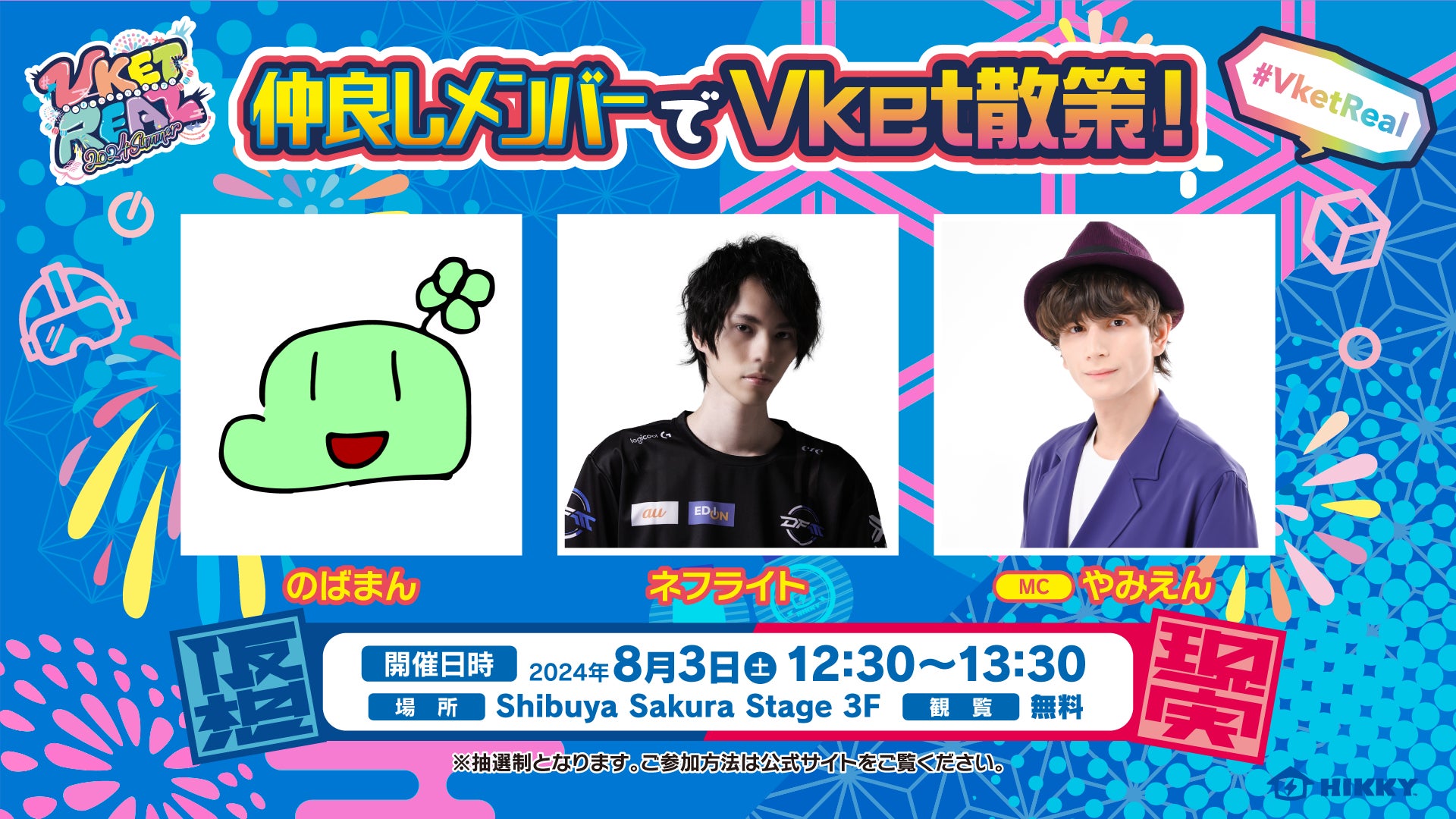応募方法:スペシャルステージイベントページ(https://event.vket.com/2024Summer/real/stage2024S)の「イベント観覧事前抽選申込み」よりご応募ください。
