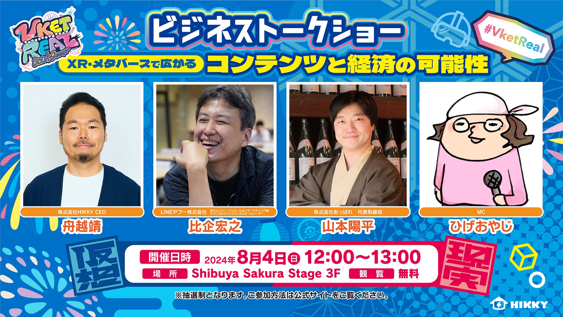 今回のVketRealのモチーフは「お祭り」!日本の伝統から古き良き文化や風習を取り入れながら、最新の技術をどう展開させていくのかなど、最古×最新のコンテンツを織り交ぜたトークもお届けします!