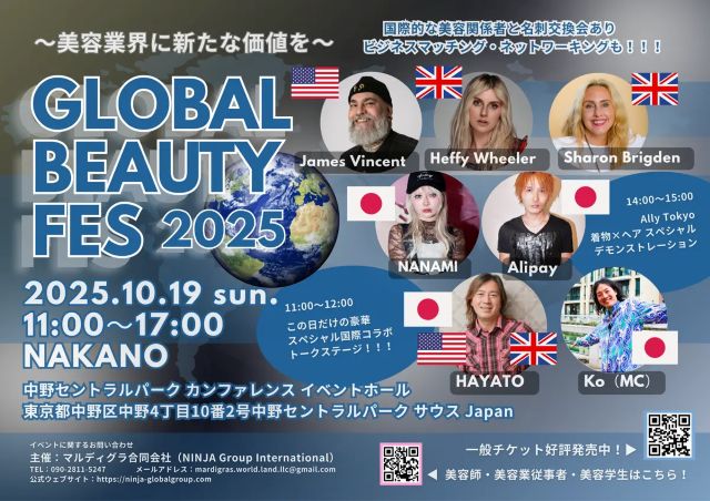 マルディグラ合同会社(NINJA Group International、本社:東京都渋谷区、代表社員:山内めぐみ)は、2025年10月19日(日)に、美容の祭典「Global Beauty Fes 2025」を中野セントラルパーク カンファレンス イベントホールにて開催いたします。