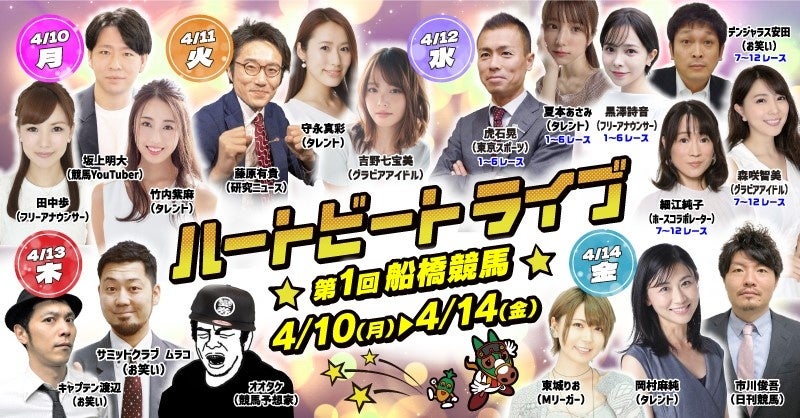 船橋競馬では、令和5年度第1回船橋競馬〔令和5年4月10日(月)~4月14日(金)〕について、新型コロナウイルス感染拡大防止対策を講じた上で、滞留人数3,000人(うち特別観覧席166人)までの有観客開催となります。