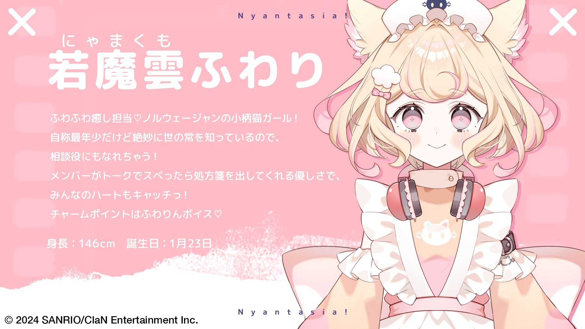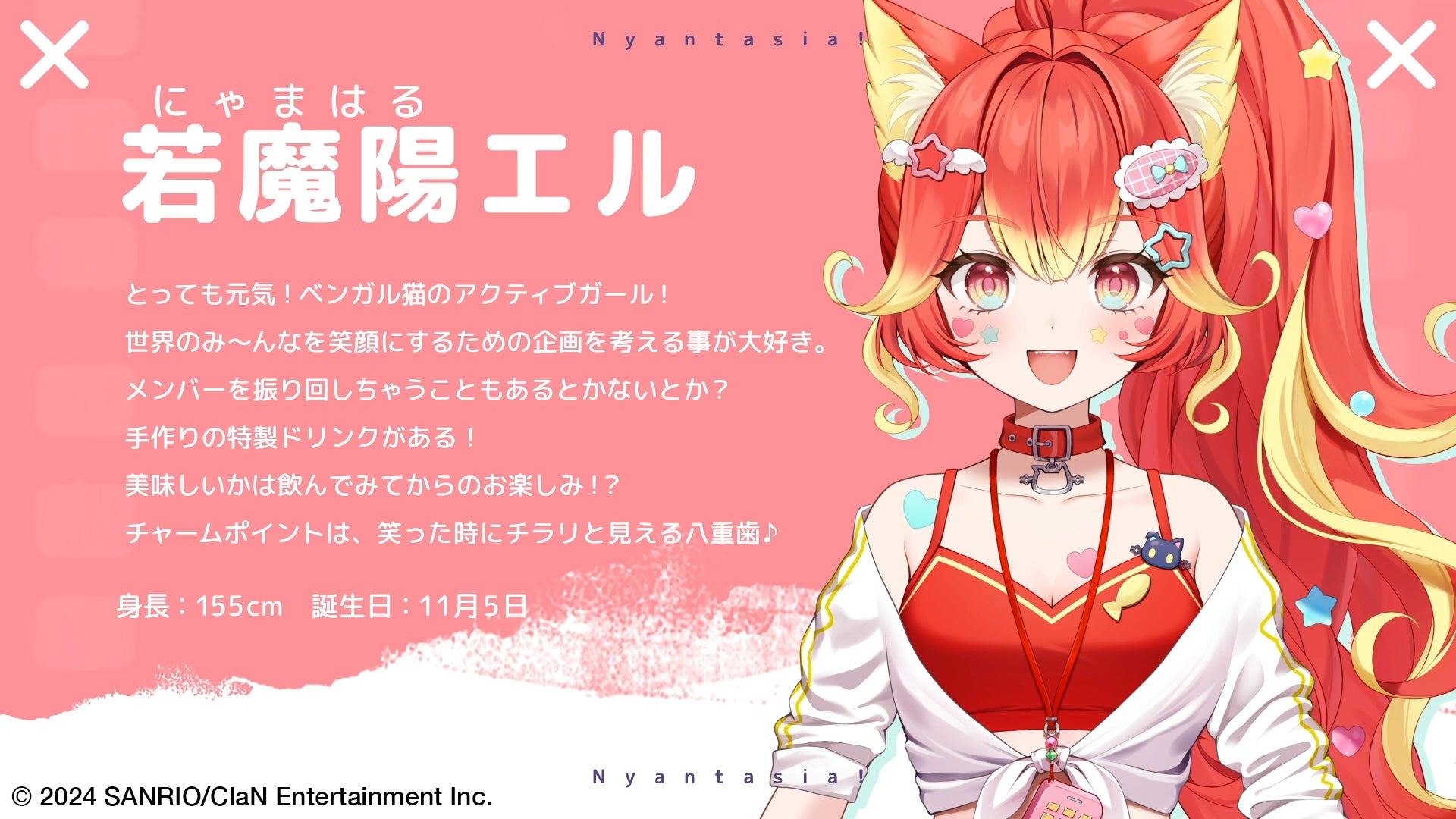株式会社ClaN Entertainment(本社:東京都港区、代表取締役社長:大井 基行)は、株式会社サンリオ(本社:東京都品川区、以下サンリオ)と共同で行うVTuberプロジェクト「にゃんたじあ!」について、新メンバーのキャラクターデザイン(立ち絵)、プロフィール、プロモーションビデオを公開いたしました。