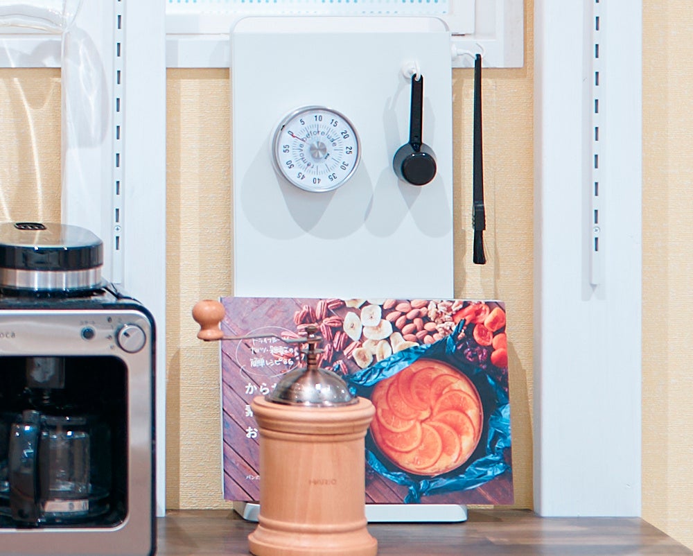 ちょっとした買い物メモやレシピ等をマグネットでつけられるレンジフードパネル&キッチンパネルが便利です。キッチンにマグネットを使える場所がないという悩みにも最適なツールです。引っ掛けるだけ、置くだけで設置ができるので、ご自宅のキッチンにも取り入れやすい為、お勧めです。