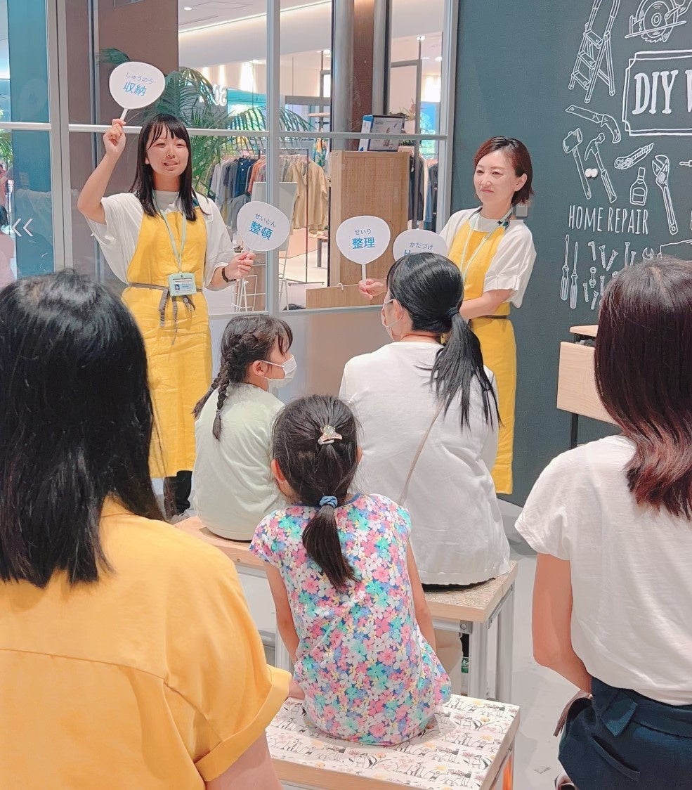DCM DIY place 夏休みスペシャル企画 整理収納アドバイザー1級 清水幸子と麻帆による“親子で片づけ”講座開催 店内のキッチンを整理収納アドバイザー目線でDIY