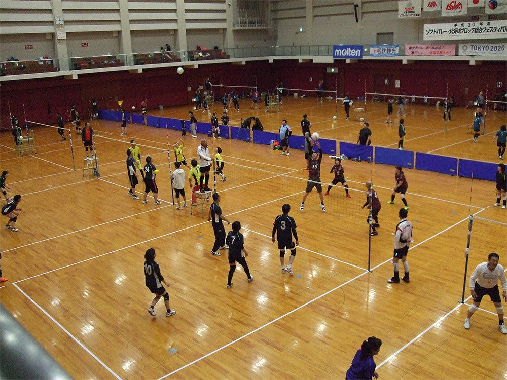 バドミントン用コートで、ゴム製ボールを使用して行う4人制のバレーボール種目です。