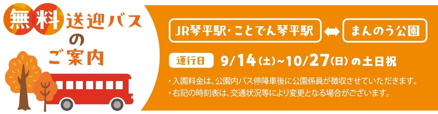 ★琴電・JR琴平駅⇔まんのう公園間 無料シャトルバスのご案内