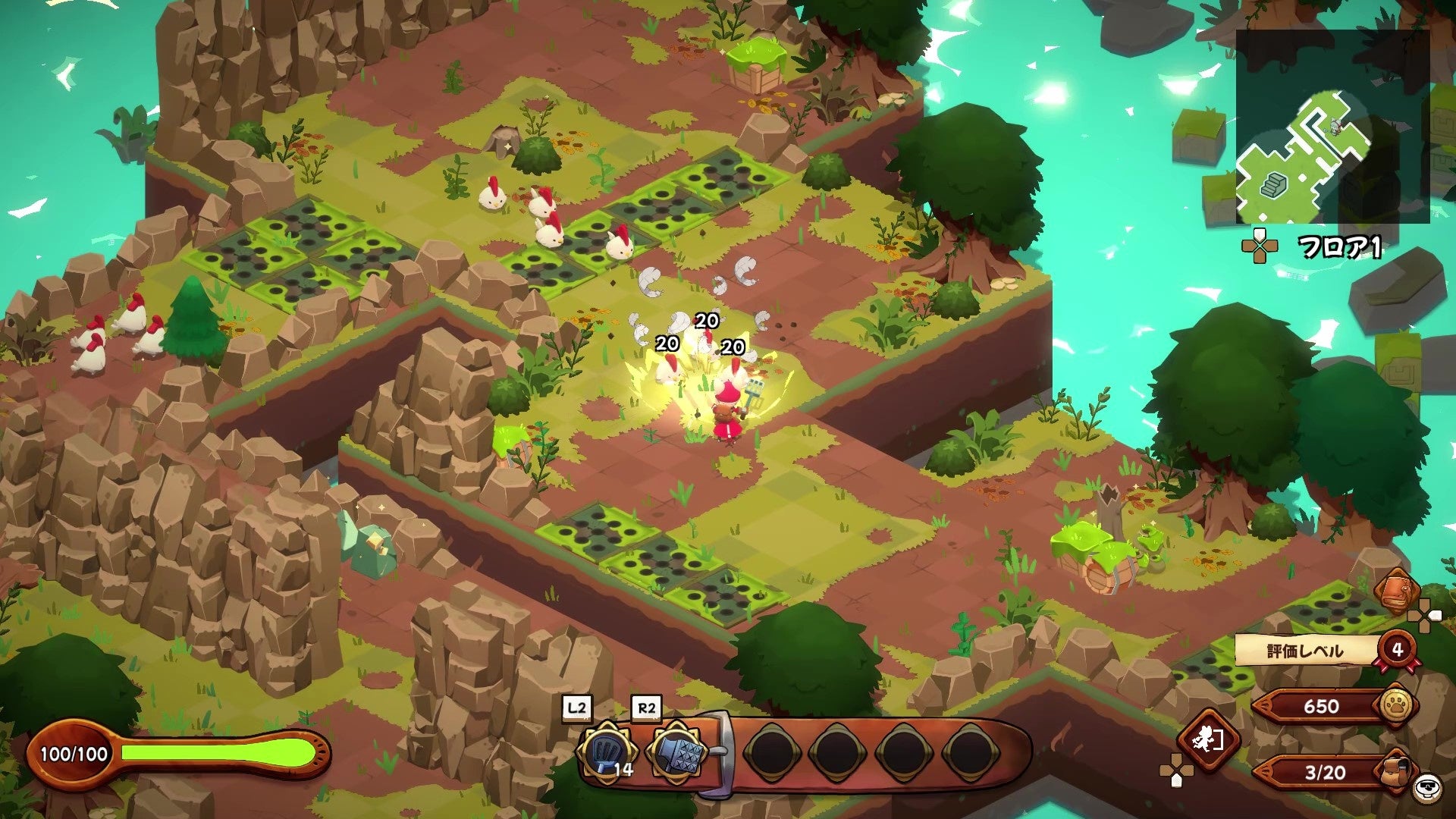キュートな冒険者ポムが、ダンジョンで食材を集め、両親の経営していたレストラン「ジャガイモの城」を極上のレストランにするために奮闘するローグライトアクション。