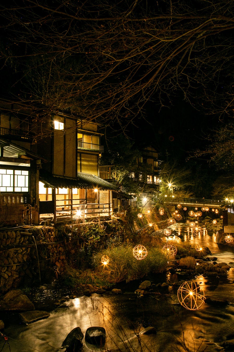 ”黒川温泉 湯あかり”、里山の幻想的な竹灯りライトアップ。今年は”湯あかり横丁”が期間限定オープン。12月21日から2025年3月31日の期間、竹の灯籠が灯る”湯あかり”と、期間限定”湯あかり横丁”を開催