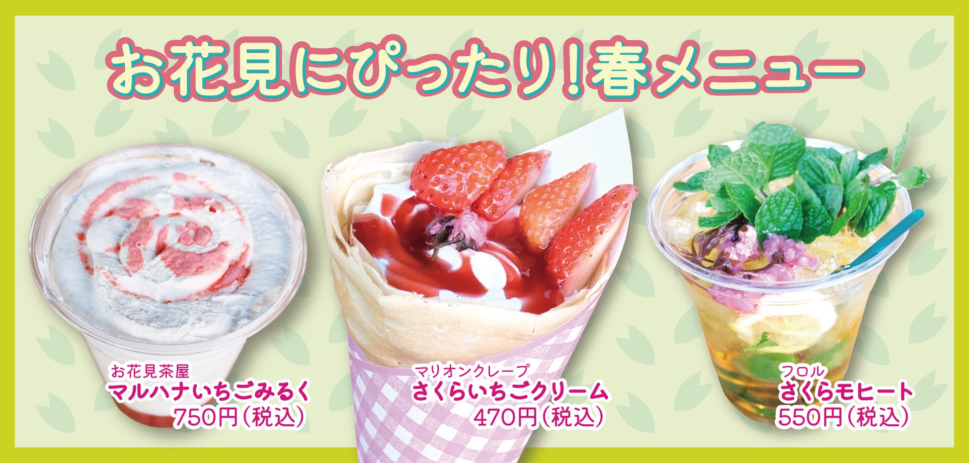 お花見シーズンならではのフードメニューが登場します。さくら色が可愛いフードをお楽しみください。