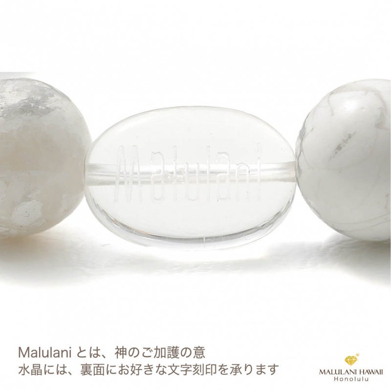 水晶には、ハワイ語で「神に護られた」という意味を持つ「malulani」と刻印。 持つ人に「神のご加護がありますように」との祈りをのせています。