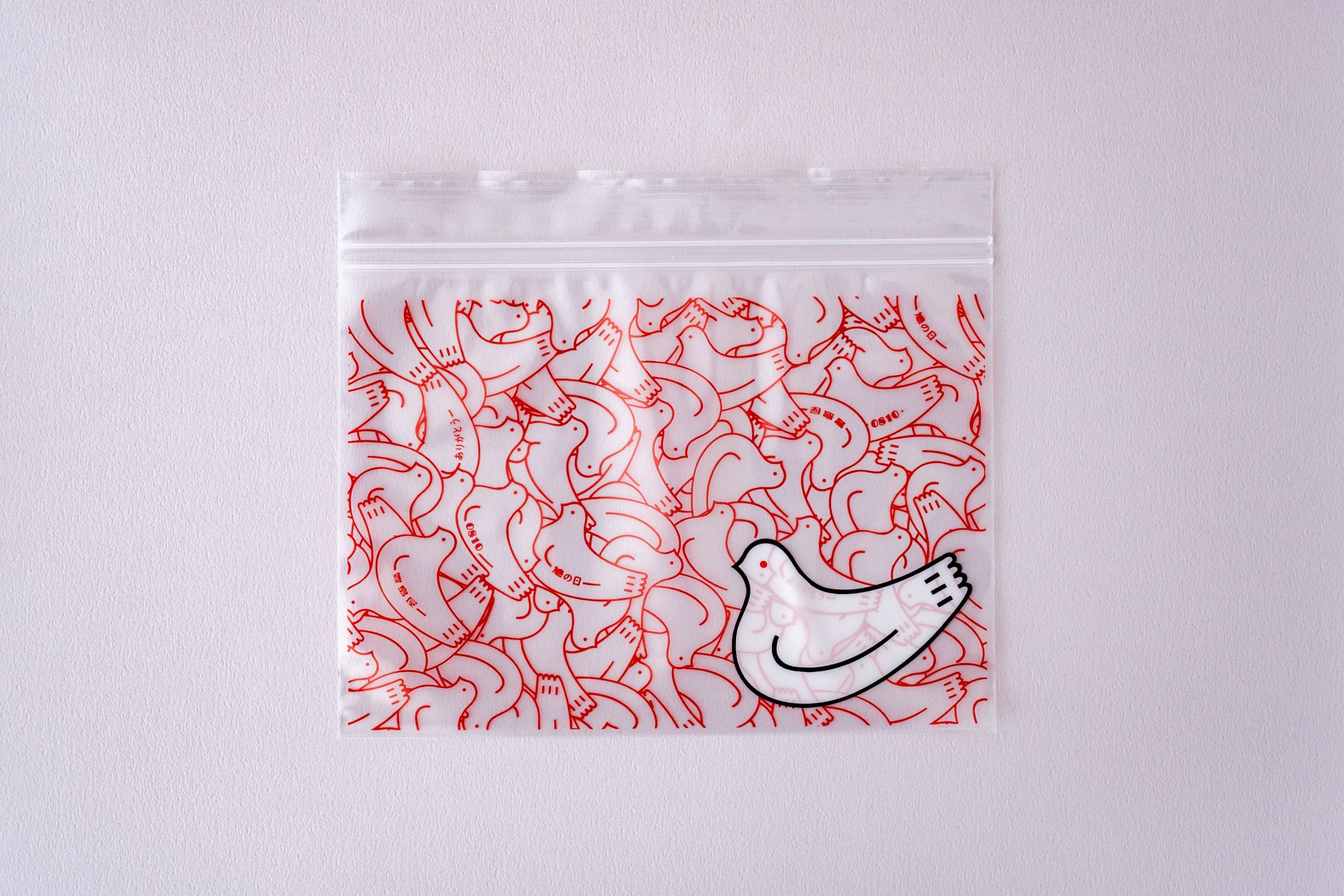 今年も、鳩の日にしか手に入らない鳩の日限定商品が登場。「袋留めクリップ(赤・白 各1本)」と「ジッパーバッグ(B6・A7サイズ 各2枚)」がセットになった「Keep Your はぁと」をご用意しました。