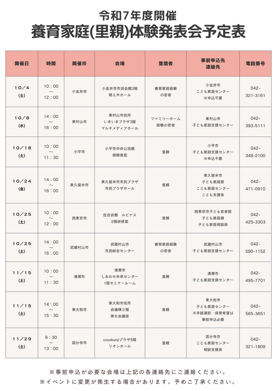 ■「養育家庭(里親)体験発表会」開催スケジュール
