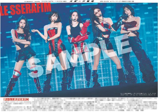 スポーツ報知を発行する報知新聞社(代表取締役社長・長谷川剛)は新聞の一部紙面をコンビニエンスストアのマルチコピー機からプリントできる「スポーツ報知コンビニプリント」サービスを展開中。スポーツ紙ならではの大きな写真を使った紙面をプリント版として販売しています。11月20日付芸能面、5人組グローバルガールグループ「LE SSERAFIM」の初の東京ドームコンサート「2025 LE SSERAFIM TOUR 'EASY CRAZY HOT’ ENCORE IN TO」の様子を伝える紙面を6種類発売。5人全員のショットの他、KIM CHAEWON、KAZUHA、SAKURA、HONG EUNCAE、HUH YUNJINそれぞれのソロをメインにした紙面をお届けします。また、コンビニプリントサービスで展開している特別紙面について、より“推し”を楽しんでいただけるよう、品質設定の一部を調整いたしました。これからも皆さまに喜んでいただけるサービスをお届けできるよう、安定した品質を提供できる調整を進めてまいります。